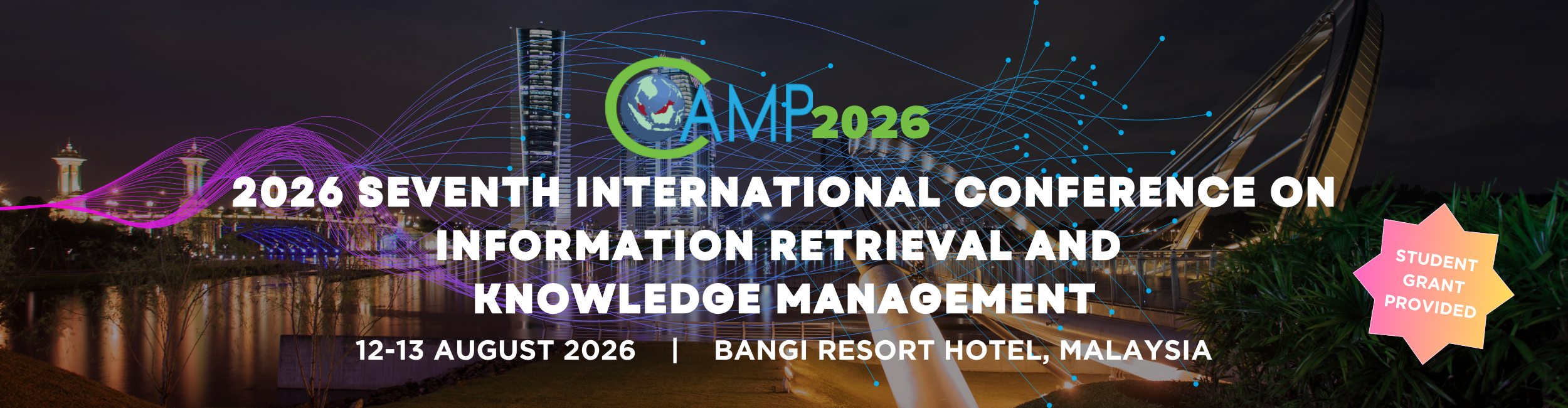 In line with the Society of Information Retrieval and Knowledge Management Malaysia's mission to advance information retrieval and knowledge intelligence in support of innovation, governance, and societal progress, the Seventh International Conference on Information Retrieval and Knowledge Management (CAMP 2026) brings together researchers, practitioners, and policymakers from around the world.